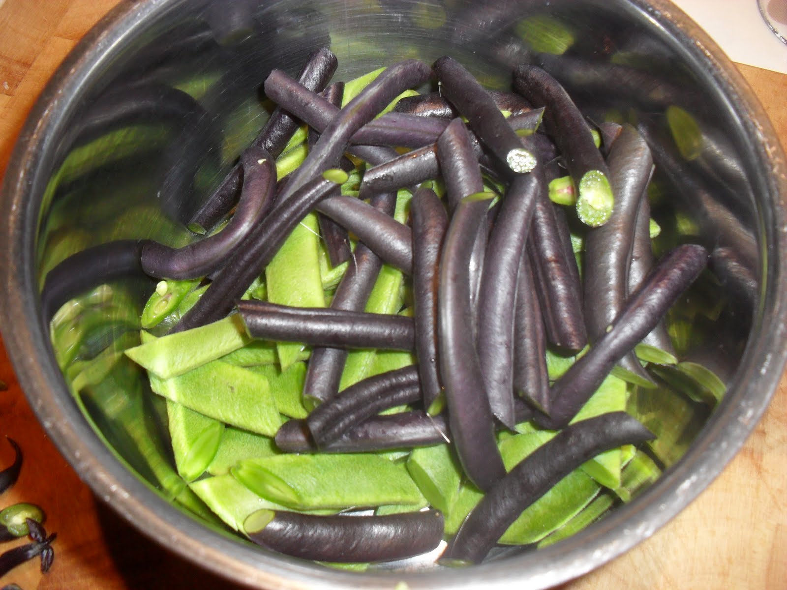 When prepared for the pot they make a lovely contrast to the bright green of our runner beans, however when cooked they revert to green. Flavour wise, they are tender and tasty. I will grow these again next year, if for nothing more than the purple flowers and the liquorice stick beans.